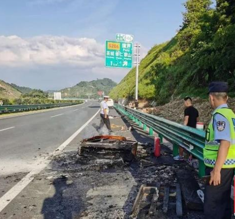 民警到達(dá)現(xiàn)場(chǎng)后與路政部門用車載滅火器將火進(jìn)行撲滅,但因火勢(shì)太旺,鋼琴和古箏已被損毀,只?蚣。
