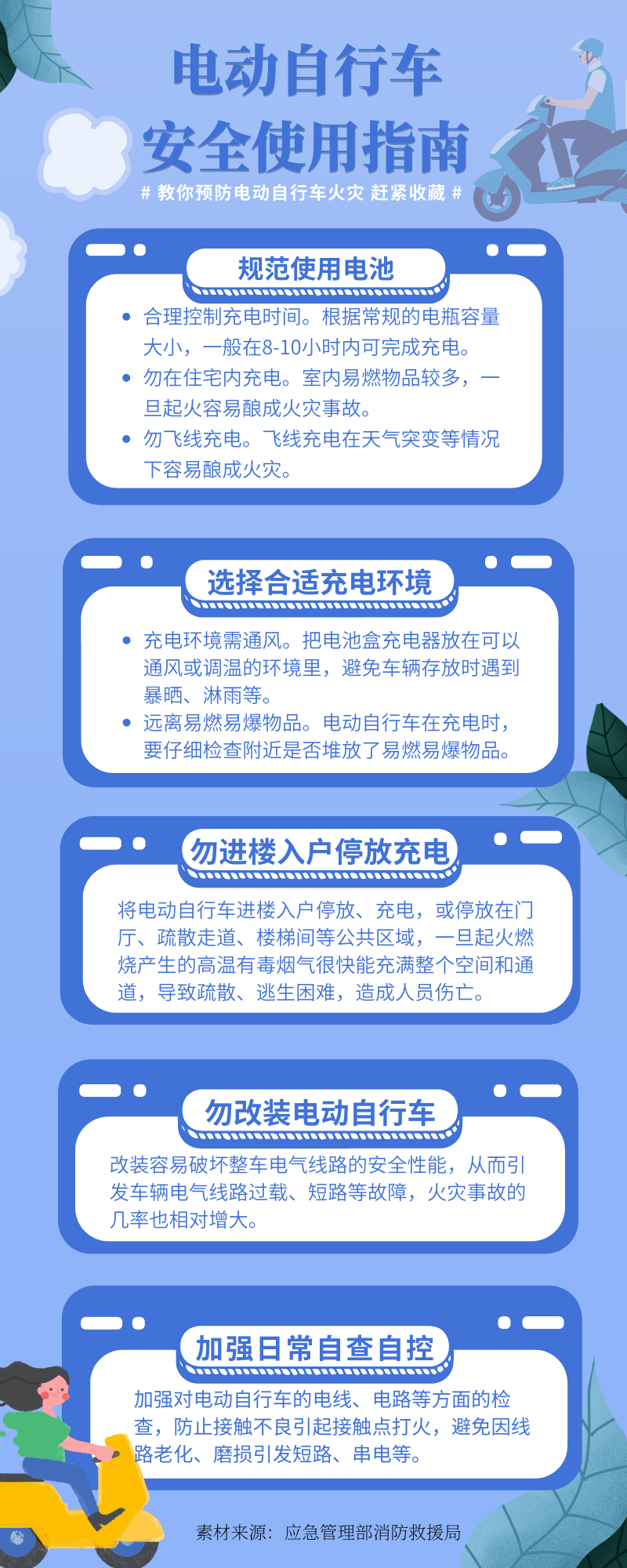“下一步,將會(huì)同有關(guān)部門(mén)繼續(xù)加強(qiáng)源頭管控和綜合治理,推動(dòng)建設(shè)更多停放、充電場(chǎng)所,跟進(jìn)出臺(tái)這些場(chǎng)所的消防安全標(biāo)準(zhǔn),推動(dòng)實(shí)施固定充電場(chǎng)所電價(jià)優(yōu)惠政策,為公眾安全規(guī)范使用電動(dòng)自行車提供更好保障。”應(yīng)急管理部消防救援局局長(zhǎng)瓊色說(shuō),“同時(shí),指導(dǎo)物業(yè)管理單位加強(qiáng)巡查檢查,及時(shí)制止違法違規(guī)行為。”