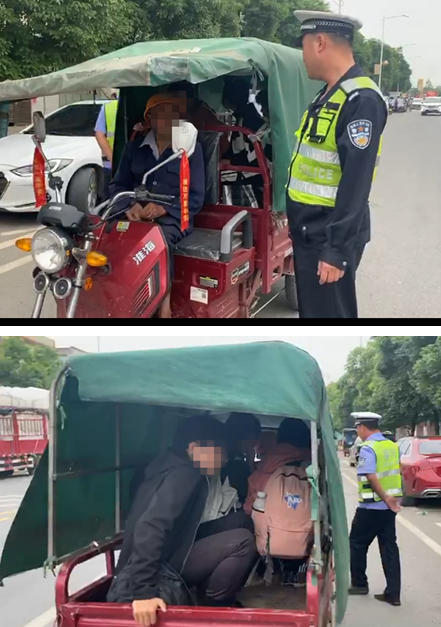 5月20日16時(shí)37分許,該大隊(duì)祥霖鋪中隊(duì)民警在道縣祥霖鋪中心小學(xué)路段執(zhí)勤時(shí),發(fā)現(xiàn)前方駛來(lái)一輛加裝雨篷的輕便三輪摩托車且車廂內(nèi)坐著人,遂上前攔停檢查。經(jīng)查,該三輪車后車廂里蹲著三名學(xué)生。據(jù)駕駛?cè)私淮,這三名學(xué)生是他的孫兒孫女,其正把孫兒孫女從道縣祥霖鋪中學(xué)接回家。民警立即把車上的三名學(xué)生叫下車,對(duì)駕乘人員宣講了三輪車違法載人的危害性,并進(jìn)行了交通安全宣傳教育。經(jīng)查明,該車駕駛?cè)?周某某,男,81歲,道縣祥霖鋪鎮(zhèn)人)涉嫌無(wú)證駕駛且違法載人,被依法處以罰款600元,并暫扣車輛。