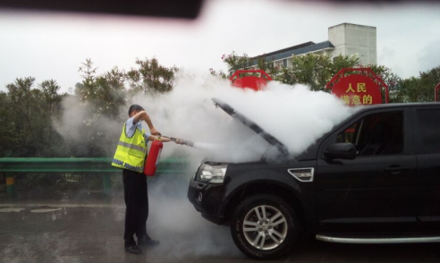 6月11日14時40分左右,在來鳳收費站入口一輛黑色小車引擎蓋突然冒白煙,疑似自燃,正在廣場執(zhí)勤的班長見狀,沒有絲毫猶豫,拿出消防滅火器火速沖出費亭沖向自燃車輛進行滅火;入口執(zhí)勤收費員見狀暫停發(fā)卡,拿起滅火器輔助滅火,經(jīng)不懈努力,兩只滅火器基本上撲滅了發(fā)動機上的明火。