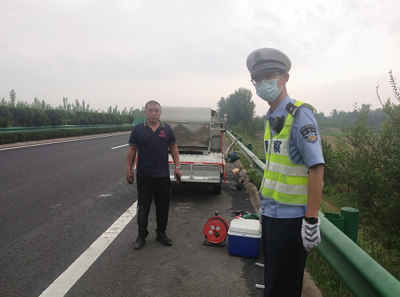 2022年6月26日14時(shí)30分左右,山東膠州灣大隊(duì)三中隊(duì)民警沿膠州灣高速青島往黃島方向巡邏至K53 KM+800米處,發(fā)現(xiàn)一輛小型貨車停在應(yīng)急車道,車輛正冒著濃煙,而高速護(hù)欄外散落著燃燒的貨物,情況十分危險(xiǎn)。民警立即到達(dá)現(xiàn)場做好防護(hù)措施,對周邊車輛進(jìn)行疏導(dǎo),隨后使用車載滅火器將車輛和護(hù)欄外的燃燒物撲滅,10分鐘后道路交通秩序恢復(fù)正常。