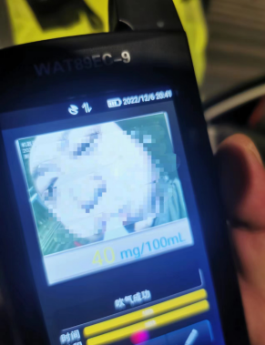 12月6日晚8時許,煙臺交警支隊五大隊民警在海越路設卡查處酒醉駕違法行為,約8時30分許,一輛白色轎車駛?cè)朊窬暰,當民警對該車進行初檢時,快檢棒爆閃顯示涉嫌酒駕,隨后民警立即對其進行酒精檢測,經(jīng)檢測該男子體內(nèi)酒精含量為:40mg/100ml,屬于酒后駕駛。
