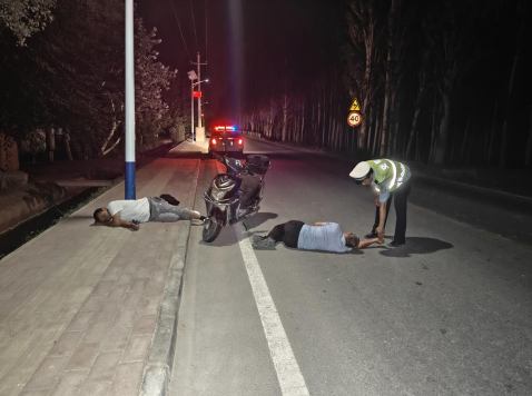 8月17日凌晨4時(shí)30分許,庫(kù)爾勒市公安局開(kāi)展“交所聯(lián)動(dòng)”警務(wù)模式,庫(kù)爾勒市公安局交警大隊(duì)庫(kù)普路中隊(duì)執(zhí)勤民警白合提亞爾·庫(kù)爾班與派出所抽調(diào)的執(zhí)勤民警比拉力•塔西組成夜巡組,當(dāng)他們巡邏至X229線33公里處的庫(kù)爾勒轄區(qū)路段時(shí),發(fā)現(xiàn)路燈下的馬路上停著一輛電動(dòng)車,旁邊還躺著兩名男子。當(dāng)時(shí)把兩名巡邏民警嚇了一大跳,莫非是發(fā)生了交通事故?兩名執(zhí)勤民警立即下車查看實(shí)情,停在道路上的電動(dòng)車完好無(wú)損,兩名身在道路旁的男子也沒(méi)有受傷。執(zhí)勤民警正在喚醒兩名酣睡男子時(shí),一股股濃烈的酒味撲面而來(lái)。