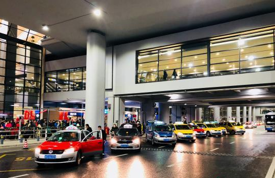 在浦東機場等候旅客的出租車!