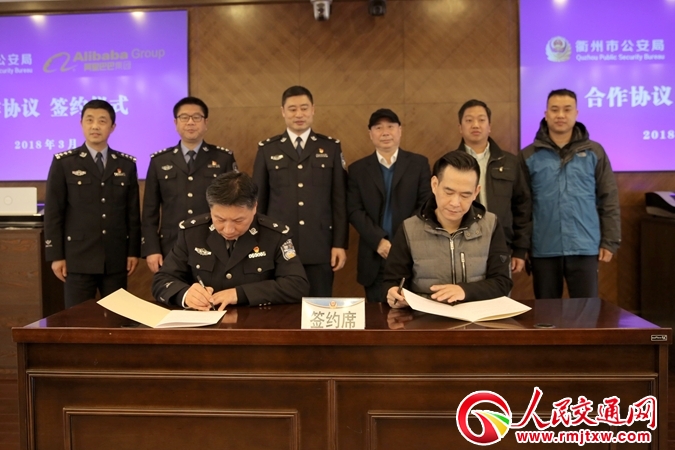 衢州市公安局黨委委員、副局長(zhǎng)江海與阿里巴巴集團(tuán)安全部總監(jiān)徐平簽署合作協(xié)議。該局黨委委員、政治部主任汪史唯等也參加了儀式。