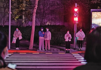 11月16日,華貿(mào)中街人行道“愛心信號燈”,市民在“愛心信號燈”下等候通行。新京報記者 王貴彬 攝