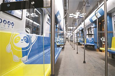 M11冬奧支線車廂座位的透明隔板上有冰墩墩造型裝飾 攝影/趙昂