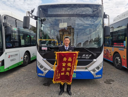 10月21日下午,煙臺市民楊強(化名)先生將一面繡有“品德高尚 拾金不昧”的錦旗送到煙臺62路車公交場站,向拾金不昧的駕駛員于樹強師傅表示感謝。