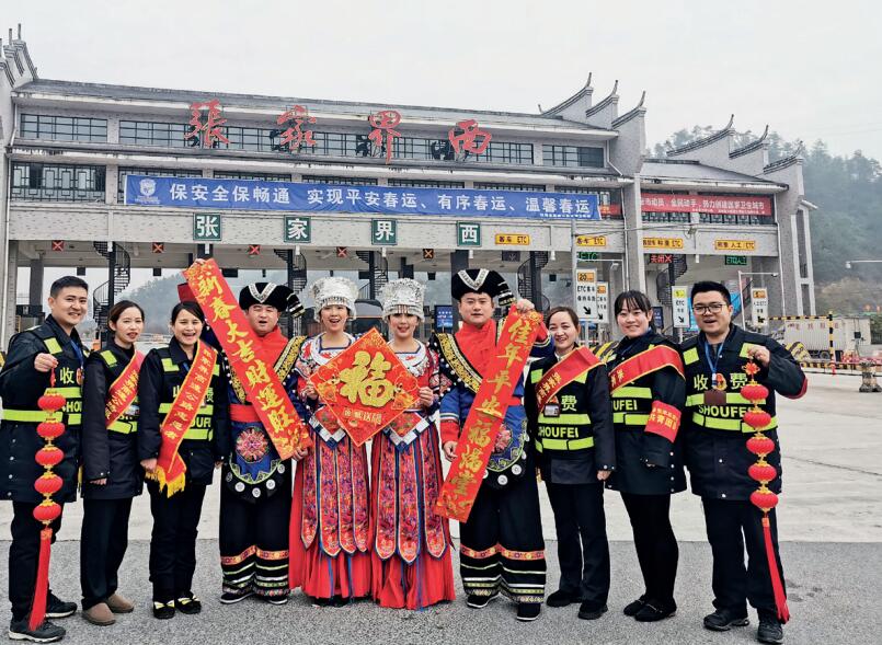 記者看到,該站結(jié)合今年“安全、暢通、有序、溫馨”的春運(yùn)主題,組織收費(fèi)員們穿上土家族傳統(tǒng)服飾,用最熱情的方式迎接廣大司乘人員和游客。他們一方面做好文明優(yōu)質(zhì)服務(wù),為過往司乘人員和游客道以“歡迎來到美麗的張家界”“祝您新年快樂、一路平安”等問候,同時為旅客提供問詢、引導(dǎo)、熱水、姜茶等服務(wù),為老弱病殘人士送上了暖寶寶;另一方面加大現(xiàn)場保暢力度,配足人員、開足車道,配合現(xiàn)場高速交警,做好現(xiàn)場管理和交通疏導(dǎo)工作,積極營造“平安春運(yùn)、溫馨春運(yùn)”的濃厚氛圍。