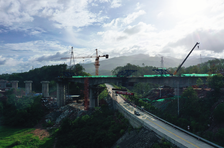 據(jù)中鐵六局集團(tuán)現(xiàn)場(chǎng)負(fù)責(zé)人介紹說(shuō):“田龍?zhí)靥卮髽蚩琮垜迅咚儋⒊鞘召M(fèi)站匝道連續(xù)梁順利合龍,標(biāo)志著位于龍川縣城附近的特殊孔跨橋梁已全部完成。自4月份復(fù)工復(fù)產(chǎn)以來(lái),我們先后完成了跨龍懷高速公路主線和匝道 “咽喉”工程的東嶺特大橋、跨龍連高速中橋系桿拱施工。在田龍?zhí)卮髽蚴┕ぶ,積極優(yōu)化施工方案,邀請(qǐng)專家進(jìn)行可行性論證,并采用新技術(shù)、新工藝、新設(shè)備、新材料,有效保證了工期,確保了工程質(zhì)量和車輛通行安全。