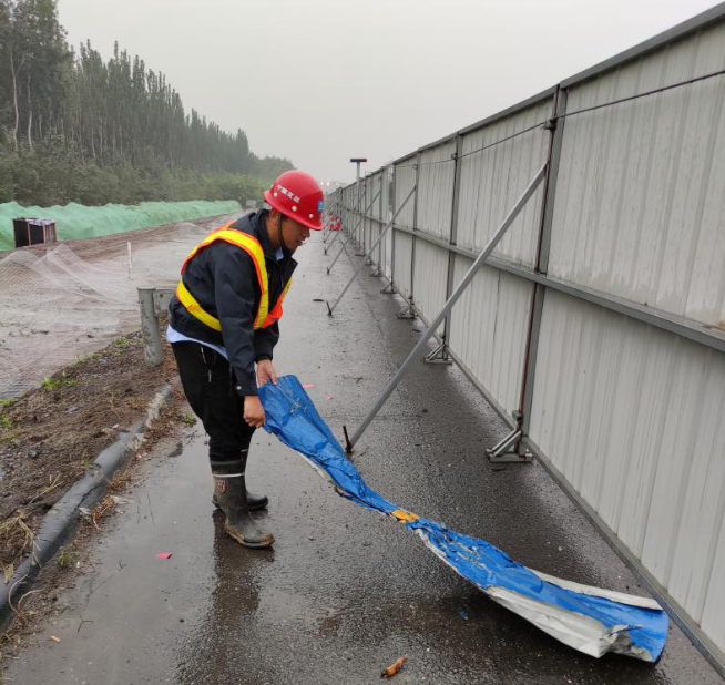 涉京津塘高速施工區(qū)域已完成泡沫土施工、灰土填筑。“沿圍擋向北有幾處爆閃燈損壞,需聯(lián)系專(zhuān)業(yè)人員修理;南側(cè)的停車(chē)港灣區(qū)段的水面正常;繼續(xù)向南,K87+700處受損的三塊圍擋還未修復(fù),但已經(jīng)采取固定措施。”楊永強(qiáng)準(zhǔn)確地記錄下現(xiàn)場(chǎng)巡視情況,為項(xiàng)目的順利開(kāi)展保駕護(hù)航。受降雨影響,無(wú)室外作業(yè)內(nèi)容,但因高速行車(chē)帶來(lái)防護(hù)壓力,需要時(shí)刻警惕高速突發(fā)狀況,在現(xiàn)場(chǎng)做好應(yīng)急準(zhǔn)備,第一時(shí)間排除風(fēng)險(xiǎn)隱患。
