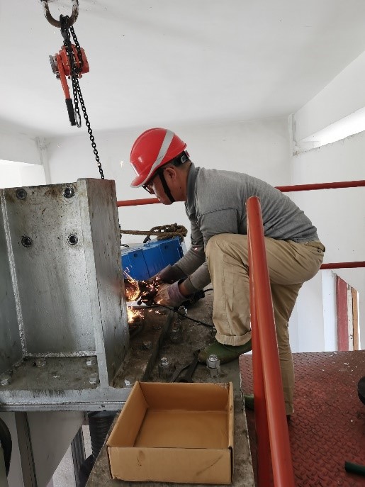 作為船閘安全運(yùn)行的保障者和守護(hù)者,自2020年5月7日起,保障中心專(zhuān)門(mén)派出副主任蔣瀟帶隊(duì)對(duì)劉老澗船閘一號(hào)閘進(jìn)行大修評(píng)估檢測(cè),對(duì)照評(píng)估檢測(cè)方案,對(duì)計(jì)劃?rùn)z測(cè)的項(xiàng)目進(jìn)行檢測(cè),認(rèn)真編制評(píng)估檢測(cè)報(bào)告,及時(shí)提供詳實(shí)的檢測(cè)數(shù)據(jù),并提出合理化建議。2020年5月9日,閘況評(píng)估檢測(cè)中發(fā)現(xiàn)的一號(hào)閘上游左岸閥門(mén)減速機(jī)組運(yùn)行不正常,該中心又迅速安排技術(shù)進(jìn)行搶修。