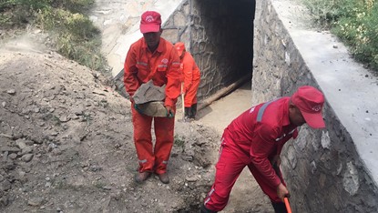 涵洞清理包括涵洞洞口、洞身清理,以及涵洞頂處路肩邊坡的整治,達到涵洞口清潔,無雜草、無垃圾,洞內(nèi)無淤積物,排水通暢,排水功能良好。養(yǎng)路工需要彎著腰進入濕漉漉的涵洞,用鐵鍬將泥土鏟進簸箕,把盛滿泥土的簸箕抬出涵洞。工人們需要在潮濕壓抑的涵洞內(nèi)來來回回重復著這些步驟,直到將涵洞清理干凈為止。