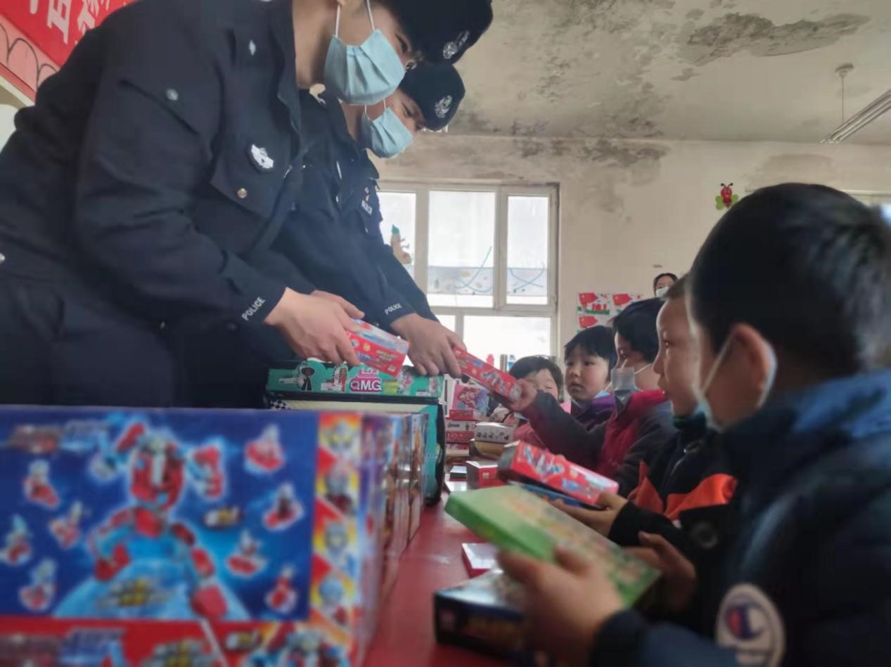 活動前夕,民警們及時對接阿依加瑪麗老師,統(tǒng)計好孩子們?nèi)粘K栉锲芬约耙挛飻?shù)量,主動的聯(lián)系慈善機構,同時發(fā)動社會各方力量,勢必要為孩子們籌備好冬季保暖物資。通過民警們半個月的不懈努力,派出所相繼收到了來自江蘇、北京、上海等全國5個省份的包裹,經(jīng)統(tǒng)計,其中冬季衣物37套,書籍100余本,玩具50余套,價值一萬余元;顒又校沙鏊窬皶r協(xié)調(diào)好車輛,第一時間將一件件物資運送至校園,親手為孩子們送去溫暖。在孩子們眼中,看到這琳瑯滿目的衣服和玩具,似乎雪域高原的寒冬飄雪,都難掩臉上的洋溢的笑容。握著手里的玩具,學生麥麥提臉上止不住的欣喜,民警們則帶著孩子們識圖認字。就這樣,教室里回蕩著孩子們稚嫩、天真的笑聲。阿依加瑪麗老師表示:非常感謝社會各界愛心人士的捐贈,讓我們的孩子們都能度過一個溫暖、快樂的冬季。