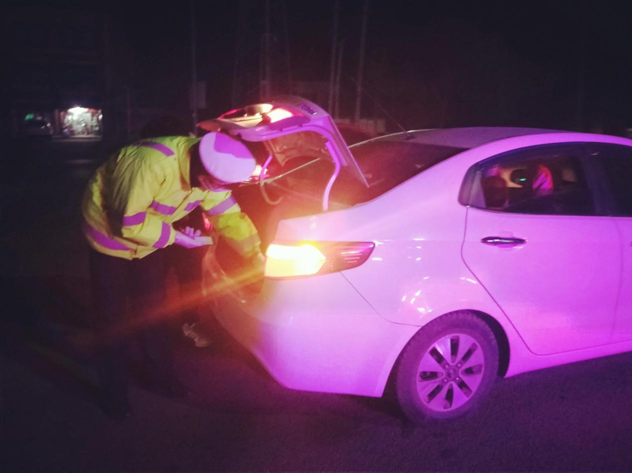 12月5日,在胡地亞于孜開(kāi)展夜檢的馬合木提·艾合買(mǎi)提擋停一輛不按規(guī)定使用燈光的車(chē)輛進(jìn)行耐心勸說(shuō)。“其實(shí)我當(dāng)時(shí)站在路中間眼睛突然被刺了一下挺生氣的,但是轉(zhuǎn)念一想,駕駛員也挺不容易的,大半夜的還在為生活奔波所以我就想的,我盡量提醒的搞笑一點(diǎn),既讓他印象深刻又能給他提個(gè)神夜間行駛?cè)菀追咐?rdquo;馬合木提·艾合買(mǎi)提對(duì)同事說(shuō)道。