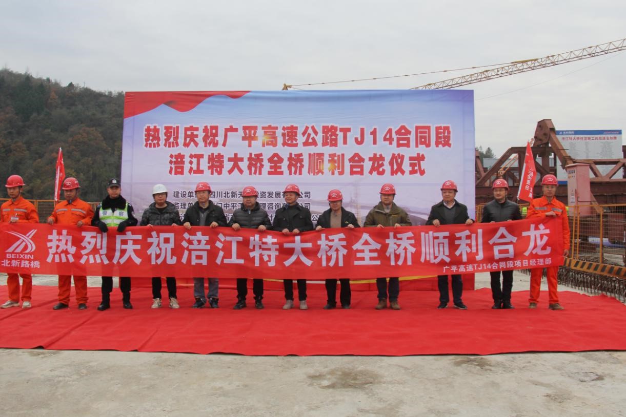 “合龍了!”12月8日,伴隨著一陣喜慶的鞭炮聲和歡呼聲,北新路橋集團(tuán)西安分公司廣平高速TJ14合同段大坪涪江特大橋右幅中跨成功合龍。作為廣平高速全線跨度最大、墩柱最高的連續(xù)剛構(gòu)橋,此次大橋順利合龍標(biāo)志著廣平高速重難點(diǎn)工程建設(shè)取得重大突破,為全線如期貫通奠定了基礎(chǔ)。