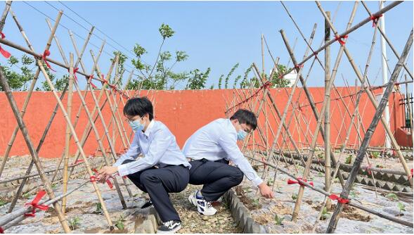 大家先去詢問(wèn)保潔師傅阿姨們,結(jié)合當(dāng)前土壤屬性土質(zhì)特點(diǎn),采購(gòu)適合種植的蔬菜種子。了解清楚之后,大家行動(dòng)起來(lái),拿起工具開(kāi)始清除雜草,揮锨舞鋤,耙土搭埂,經(jīng)過(guò)大半天的辛苦勞作,很快將后面的荒地變成了壟行齊整的菜田。大家看著大變樣的小菜園,露出了欣喜的笑容,紛紛表示會(huì)好好照顧這些苗種,定期對(duì)種植的瓜果菜苗進(jìn)行澆水、施肥、除草,讓它們?cè)诮瓯惫芾硭牟藞@里向陽(yáng)生長(zhǎng)。