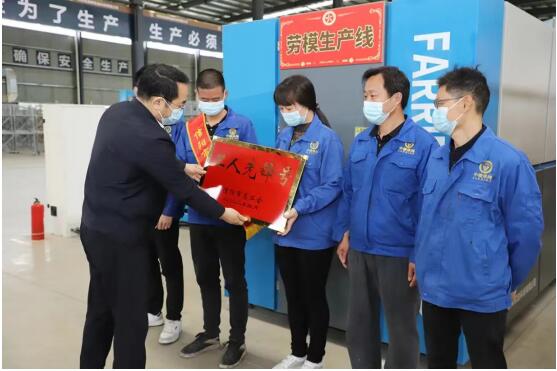 為全面貫徹落實(shí)習(xí)近平總書(shū)記在全國(guó)勞動(dòng)模范和先進(jìn)工作者表彰大會(huì)上的重要講話精神,在“五一”國(guó)際勞動(dòng)節(jié)來(lái)臨之際,4月28日上午,河南省信陽(yáng)市委副書(shū)記、組織部長(zhǎng)孫巍峰,市人大常委會(huì)副主任、市總工會(huì)主席嚴(yán)謹(jǐn),市總工會(huì)黨組書(shū)記、副主席李強(qiáng)等一行領(lǐng)導(dǎo)深入狼牌輪胎生產(chǎn)一線,走訪慰問(wèn)勞模工匠先進(jìn)人物、一線職工,把黨委、政府和工會(huì)組織的關(guān)心關(guān)愛(ài)傳遞到職工心中。狼牌輪胎黨支部書(shū)記、董事長(zhǎng)熊?chē)?guó)武先生,工會(huì)主席陳浩全程陪同。