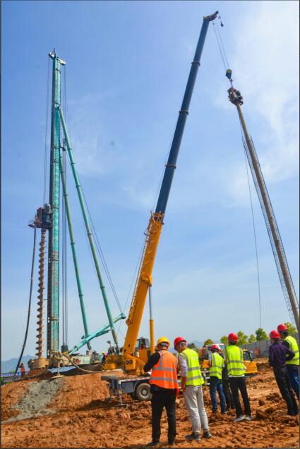 此次樁基施工采用長(zhǎng)螺旋壓灌混凝土技術(shù),灌注樁長(zhǎng)達(dá)16米,樁徑0.8米,為扎穩(wěn)扎牢工程的基礎(chǔ)“骨架”,施工過(guò)程中需按照設(shè)計(jì)標(biāo)準(zhǔn)及工序過(guò)程進(jìn)行嚴(yán)格控制。為此,該項(xiàng)目部精心組織,統(tǒng)籌部署,緊抓施工黃金期,搶造“三通一平”良好施工條件,扎實(shí)開(kāi)展技術(shù)交底,全力推進(jìn)工程“起跑增速”。從開(kāi)孔、成孔、檢孔到澆筑的各個(gè)環(huán)節(jié),合理安排人員設(shè)備,認(rèn)真落實(shí)執(zhí)行報(bào)檢程序,并指派相關(guān)技術(shù)人員全程旁站監(jiān)督,確保了質(zhì)量安全“雙關(guān)”穩(wěn)控在控,效率進(jìn)度“兩線(xiàn)”同步提升。