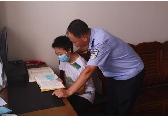 最近幾天,在甘肅省永靖縣公安局古城派出所,多了一個小男孩,一會在大院里玩耍,一會在宿舍寫作業(yè),看著爸爸忙碌的身影,他也乖巧、懂事地干著自己的工作,他叫祁緒瑞,是派出所民警祁先拯的兒子,因妻子尤玲芳被抽調(diào)到疫情隔離點,放暑假的兒子無人照看,在疫情防控的特殊時期,派出所成了祁緒瑞的另一個家。