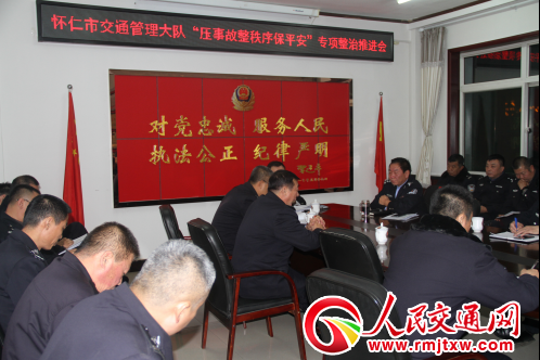 人民交通網(wǎng)訊為進(jìn)一步深入推進(jìn)“壓事故、整秩序、保平安”專項整治行動,確保該項工作取得實效,11月8日下午,懷仁市公安局交通管理大隊召開中隊領(lǐng)導(dǎo)以上及相關(guān)負(fù)責(zé)人會議,就專項整治工作進(jìn)行了再安排、再部署。