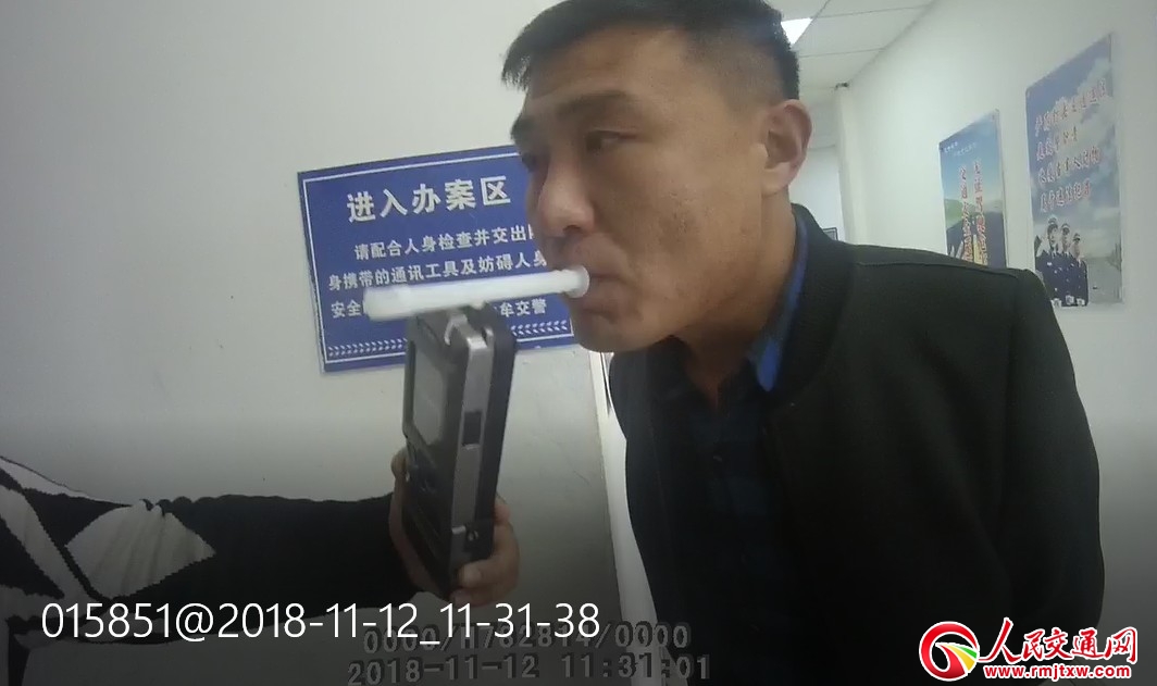 2018年11月12日上午,中牟交警樊銘鐘、王永祥等人在中牟縣物流通道與人文路交叉口西50米處執(zhí)勤時(shí),大約到了10時(shí)49分許,一輛白色小型汽車沿鄭汴物流通道由西向東行駛過來,因發(fā)現(xiàn)該車駕駛?cè)宋聪蛋踩珟,民警就示意該司機(jī)靠邊停車接受檢查。當(dāng)對(duì)該駕駛?cè)诉M(jìn)行檢查時(shí),不僅發(fā)現(xiàn)該駕駛?cè)松裆惓,并且聞到駕駛?cè)松砩虾蛙噧?nèi)有很大的酒氣。民警隨即對(duì)駕駛?cè)诉M(jìn)行檢測,結(jié)果為:92 mg /100 ml,涉嫌醉酒駕駛機(jī)動(dòng)車,于是執(zhí)勤民警將其帶回大隊(duì)作進(jìn)一步核查。