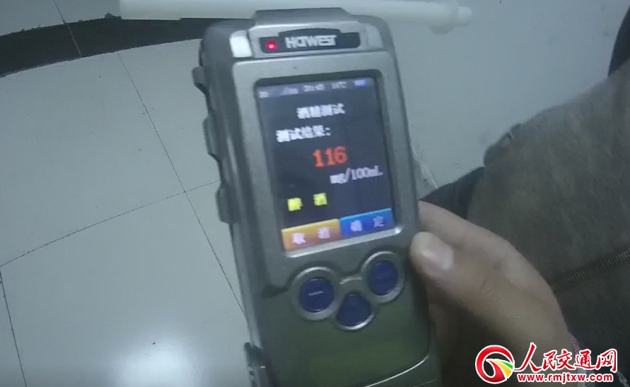 2018年11月11日晚上,中牟交警晏飛龍、沈平等人在韓潘路上巡邏,大約到了20時(shí)20分左右,他們發(fā)現(xiàn)一輛黑色轎車(chē)沿韓潘路由南向北行駛,駕駛?cè)丝赡苁前l(fā)現(xiàn)了巡邏的交警就停了下來(lái),停的時(shí)間不長(zhǎng),又開(kāi)始慢慢前行,執(zhí)勤民警覺(jué)得這輛車(chē)有問(wèn)題,就示意該車(chē)靠邊停車(chē)接受檢查,但是司機(jī)不但沒(méi)有靠邊,而是準(zhǔn)備掉頭逃跑,在掉頭逃跑的過(guò)程中,被執(zhí)勤民警抓獲。當(dāng)駕駛?cè)舜蜷_(kāi)車(chē)門(mén)時(shí),執(zhí)勤民警明顯感覺(jué)到車(chē)內(nèi)和駕駛?cè)松砩嫌泻艽缶莆叮S用呼氣式酒精檢測(cè)儀進(jìn)行檢測(cè),其檢測(cè)結(jié)果是116mg/100ml,涉嫌醉酒駕駛機(jī)動(dòng)車(chē),于是執(zhí)勤民警將駕駛?cè)藥Щ卮箨?duì)做進(jìn)一步核查。