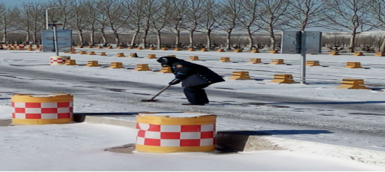 御道口聯(lián)合治超站工作人員嚴(yán)寒清理路面積雪