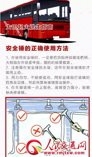 ◆大巴是密閉車窗,需用安全錘敲擊車窗。需要注意的是,應(yīng)敲擊車窗四角,這樣更容易敲碎玻璃。
