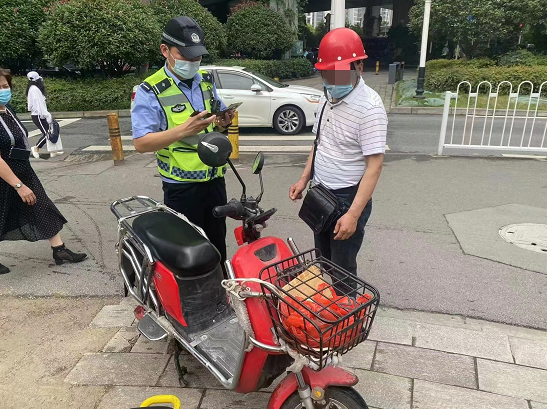 6月1上午10時(shí)許,大隊(duì)民警付建國(guó),在南湖大道尤李村路口進(jìn)行電動(dòng)車(chē)整治工作,恰巧此時(shí)一輛無(wú)牌電動(dòng)車(chē)經(jīng)過(guò)路口,執(zhí)勤民警發(fā)現(xiàn)這一情況,立即上前示意其停車(chē)。