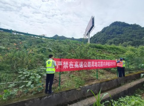 圖二:張貼“嚴(yán)禁在高速公路用地范圍內(nèi)種植農(nóng)作物”橫幅