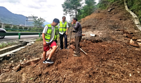 圖一:第一綜合巡檢辦巡查員勸止老人不能在高速用地上種植農(nóng)作物