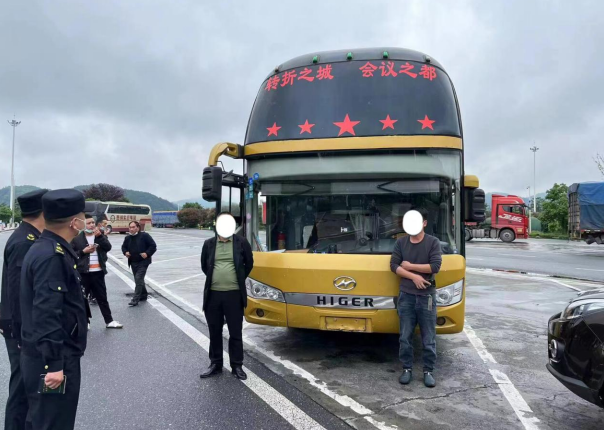 在現(xiàn)場(chǎng),縣交通運(yùn)輸綜合行政執(zhí)法局執(zhí)法人員對(duì)過往客車進(jìn)行例行檢查,發(fā)現(xiàn)有7名乘客準(zhǔn)備向一輛貴CT***的長(zhǎng)途客車上車,執(zhí)法人員立即上前出示執(zhí)法證件,并依法開展調(diào)查,要求當(dāng)班駕駛員及副駕出示相關(guān)證件,并進(jìn)行拍照、攝像調(diào)查取證。在進(jìn)一步調(diào)查中,執(zhí)法人員了解到該車搭載的 18 名乘客從貴州省遵義市馬家灣出發(fā),沿途分別在湄潭服務(wù)區(qū)上客2人、銅仁壩黃服務(wù)區(qū)上客4人、鳳崗服務(wù)區(qū)上客1人、鳳凰縣南長(zhǎng)城服務(wù)區(qū)上車7人,共計(jì)32 人,分別運(yùn)往湖南株洲、江西景德鎮(zhèn)、浙江省溫州、臺(tái)州、寧波、永康、蕭山等地,談好價(jià)格分別為 270 元、200元、260元、240元、300元、350元不等車費(fèi),大部分乘客之間相互并不認(rèn)識(shí),均為站外上車,對(duì)乘坐車輛的安全性與合法性一無所知。