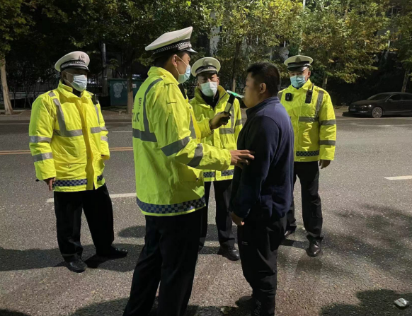 經(jīng)過執(zhí)勤交警的詢問,駕駛員和旁邊副駕駛座位上的男子都已喝酒。執(zhí)勤交警隨即對駕駛員進行酒精測試,結果顯示駕駛員酒精含量為38mg/100ml,屬于飲酒后駕駛機動車違法行為。