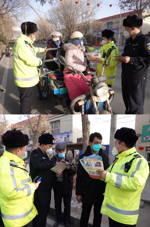 1月29日下午,新疆巴音郭楞蒙古自治州(以下簡(jiǎn)稱(chēng)“巴州”)庫(kù)爾勒市公安局交警大隊(duì)庫(kù)普路中隊(duì)執(zhí)勤交警與阿瓦提農(nóng)場(chǎng)派出所執(zhí)勤民警攜手聯(lián)動(dòng)協(xié)作,采取靈活多樣的上路執(zhí)勤宣傳、入戶(hù)走訪宣傳、集中群眾宣講等形式,向農(nóng)民朋友普法送安全,率先在巴州拉開(kāi)公安交警與治安部門(mén)聯(lián)動(dòng)協(xié)作常態(tài)化開(kāi)展農(nóng)村交通安全宣傳、防火防盜防騙等公共安全宣傳活動(dòng)的帷幕。
