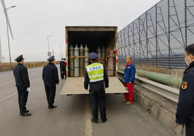 9時(shí)50分許,執(zhí)法人員在濰坊港中港區(qū)海港路濰坊港集團(tuán)大門口西側(cè)示意一輛牌照為魯G8XXX的小型廂貨車停車接受檢查,該車故意駛出一段距離停車的異常行為,引起了執(zhí)法人員的警覺,當(dāng)駕駛員打開了車廂板時(shí),讓執(zhí)法人員揪心的一幕出現(xiàn)了,車輛廂貨倉內(nèi)密密麻麻的擺放著已捆綁、未捆綁大大小小的30多個(gè)瓶罐,罐體上標(biāo)明有二氧化碳、乙炔、丁烷等。此時(shí)駕駛員還心存僥幸,極力辯解運(yùn)輸罐體都是空罐,不存在危害性。然而當(dāng)細(xì)心執(zhí)法人員拿出他不小心遺漏在駕駛室里的出貨送貨記錄本時(shí),只得承認(rèn)自己非法從事危險(xiǎn)貨物運(yùn)輸?shù)氖聦?shí)。