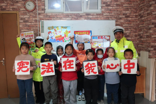 為大力弘揚(yáng)憲法精神,建設(shè)社會(huì)主義法治文化,加強(qiáng)憲法學(xué)習(xí)宣傳,強(qiáng)化憲法意識(shí),使尊法學(xué)法守法用法在全社會(huì)蔚然成風(fēng),推動(dòng)建設(shè)中華民族現(xiàn)代文明。在“憲法宣傳周”之際,庫爾勒市公安局交警大隊(duì)的民警主動(dòng)來到各個(gè)美術(shù)培訓(xùn)中心和學(xué)校向小朋友們送法律、送安全、送服務(wù),組織小朋友們學(xué)憲法、講憲法的同時(shí),還與美術(shù)老師一起指導(dǎo)小朋友們開展‘憲法在我心中’主題繪畫活動(dòng),動(dòng)員小朋友們用手中的紙和彩筆將憲法學(xué)習(xí)內(nèi)容“畫”進(jìn)心田。為推動(dòng)在全社會(huì)掀起憲法學(xué)習(xí)宣傳的熱潮,民警與老師還要求小朋友們通過“小手拉大手”的方式,讓小朋友們發(fā)揮“酵母”作用,把繪畫帶回家中,帶動(dòng)父母親和其他親人們一起學(xué)習(xí)憲法、遵守憲法、維護(hù)憲法權(quán)威,樹立法律意識(shí),力爭讓憲法知識(shí)家喻戶曉,使憲法精神深入人心,全家總動(dòng)員自覺做到遵守交通法規(guī)、安全文明出行,為庫爾勒文明交通盡一份力量。