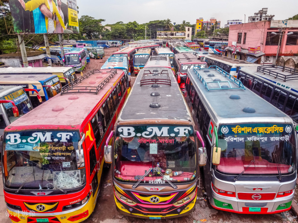 當地時間2021年8月3日,孟加拉國南部地區(qū),當地最繁忙的巴士站之一的巴里沙爾巴士站因新冠疫情而被封鎖。