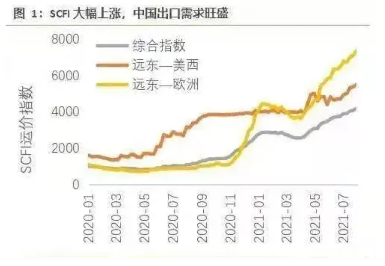 7月份全球集裝箱海運(yùn)價格大幅上漲,原因一是補(bǔ)貼使歐美消費(fèi)需求旺盛,二是7月份是歷年集運(yùn)旺季,三是7月底臺風(fēng)導(dǎo)致華東船期延誤和港口擁堵。