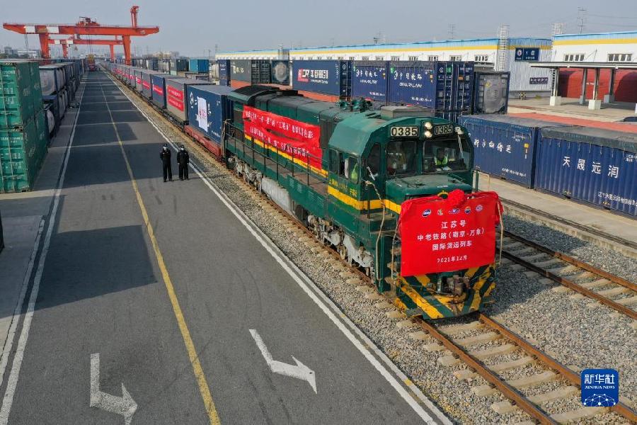 12月8日11時(shí)許,隨著載有76個(gè)標(biāo)箱出口貨物的“江蘇號”中老鐵路國際貨運(yùn)列車從中國鐵路上海局集團(tuán)有限公司南京貨運(yùn)中心堯化門鐵路貨場啟程,長三角地區(qū)開行的首趟中老鐵路(南京—萬象)國際貨運(yùn)列車正式開行。