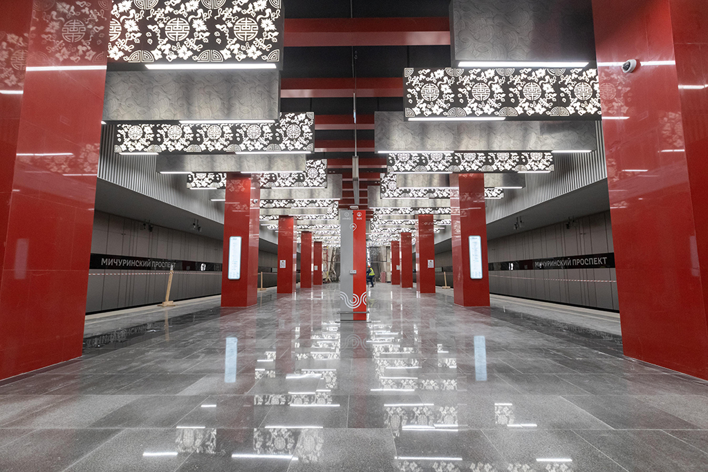 12月7日,由中國(guó)鐵建承建的莫斯科地鐵第三換乘環(huán)線西南段投入運(yùn)行。俄羅斯總統(tǒng)普京以視頻連線形式出席通車儀式并宣布正式開(kāi)通。2017年1月,中國(guó)鐵建中標(biāo)莫斯科地鐵第三換乘環(huán)線西南段項(xiàng)目,標(biāo)段全長(zhǎng)5.4公里,包含阿明耶沃站、米丘林大街站、韋爾納茨基大街站3個(gè)車站和9條盾構(gòu)隧道建設(shè)任務(wù),這也是俄羅斯首次在地鐵施工領(lǐng)域引進(jìn)中國(guó)企業(yè)。走進(jìn)米丘林大街地鐵站,紅色立柱、團(tuán)壽紋、祥云等中國(guó)元素隨處可見(jiàn)。這里已經(jīng)成為中俄友誼的新地標(biāo),展現(xiàn)出“一帶一路”上的跨文化盛景。