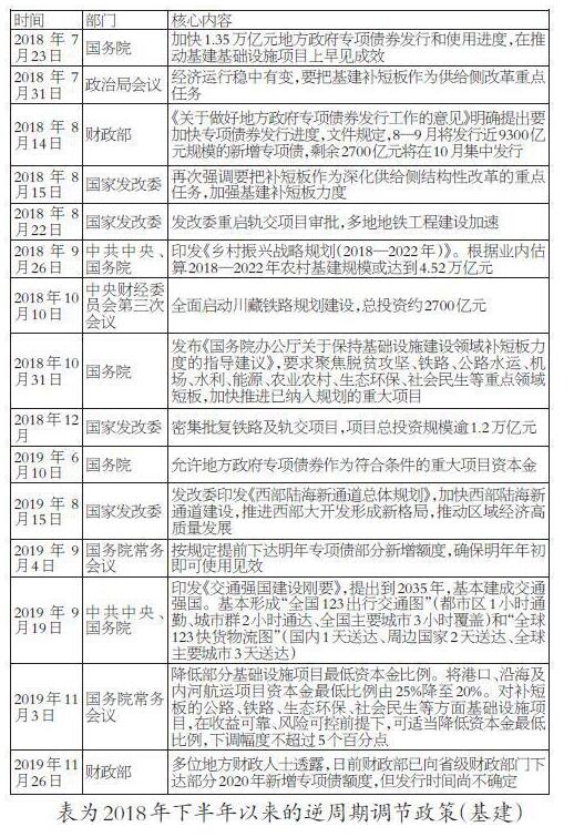 然而,公路建設(shè)資金面的整體好轉(zhuǎn)僅靠融資結(jié)構(gòu)來(lái)支持遠(yuǎn)遠(yuǎn)不夠。眾所周知,2019年6月,專項(xiàng)債可充當(dāng)資本金的條例出臺(tái)后,市場(chǎng)產(chǎn)生了較為樂(lè)觀的預(yù)期,普遍預(yù)測(cè)基建投資增速將回升,在6%―10%。然而,截至2019年11月,基建投資完成額增速依舊保持在4%―5%的近年低位,并未明顯好轉(zhuǎn)。在這種情況下,自2018年起依托基建的逆周期調(diào)節(jié)不斷加碼,并且這種調(diào)節(jié)節(jié)奏在2019年進(jìn)一步提速,包括允許地方政府專項(xiàng)債券作為符合條件的重大項(xiàng)目資本金、印發(fā)《西部陸海新通道總體規(guī)劃》推進(jìn)西部大開(kāi)發(fā)、印發(fā)《交通強(qiáng)國(guó)建設(shè)綱要》并設(shè)立2035年基本建成交通強(qiáng)國(guó)目標(biāo)、降低部分基礎(chǔ)設(shè)施項(xiàng)目最低資本金比例、按規(guī)定提前下達(dá)2020年專項(xiàng)債部分新增額度等?梢灶A(yù)見(jiàn)的是,在“不搞大水漫灌”的政策基調(diào)下,為了托底經(jīng)濟(jì),至少2020年上半年這種依托基建開(kāi)展的逆周期調(diào)節(jié)很有可能繼續(xù)加碼,而這種政策面的不斷加碼,也將為包括公路建設(shè)在內(nèi)的基建創(chuàng)造更加寬松的資金面環(huán)境。