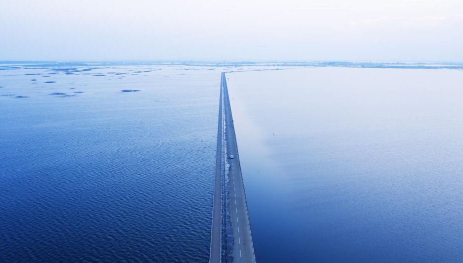 9月8日傍晚,位于江西省九江市永修縣的永吳公路大湖池段水面緩緩降至與路面齊平,形成了“最美水上公路”的美麗景象。長達5公里的永吳公路猶如一條蛟龍,水中有路,路在水中,形成了一道“水天一色”的獨特景觀。