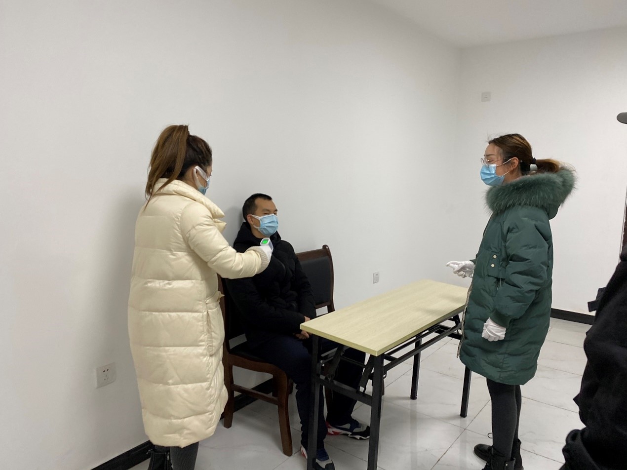 演練中工作人員模擬在查看一外來人員健康防疫碼、行程碼時,發(fā)現(xiàn)該人員途經(jīng)過高風(fēng)險地區(qū),對其進(jìn)行體溫測量發(fā)現(xiàn)體溫高于37.2攝氏度,疑似為新冠肺炎感染者。安保人員立即逐級上報情況,啟動應(yīng)急預(yù)案。指揮小組根據(jù)現(xiàn)場情況,果斷采取措施,調(diào)配人員現(xiàn)場處置:一是由安保人員立即將疑似病毒感染者帶入隔離觀察室;二是路產(chǎn)安全部聯(lián)合交警、執(zhí)法在普安互通和宜賓西收費站進(jìn)行交通管制,出站車輛經(jīng)中央活動護(hù)欄開口處掉頭駛離該區(qū)域,并同時封鎖辦公區(qū)域禁止該區(qū)域人員流動;三是信息中心立即向市交通局,社區(qū)醫(yī)院報告情況;四是信息中心及時、準(zhǔn)確地在公司內(nèi)部發(fā)布信息,要求辦公區(qū)域所有人做好防控措施;五是由醫(yī)院人員將疑似病毒感染者和密切接觸者帶離,并及時進(jìn)行現(xiàn)場消毒,現(xiàn)場采樣檢測,確認(rèn)檢測結(jié)果后解除管制。