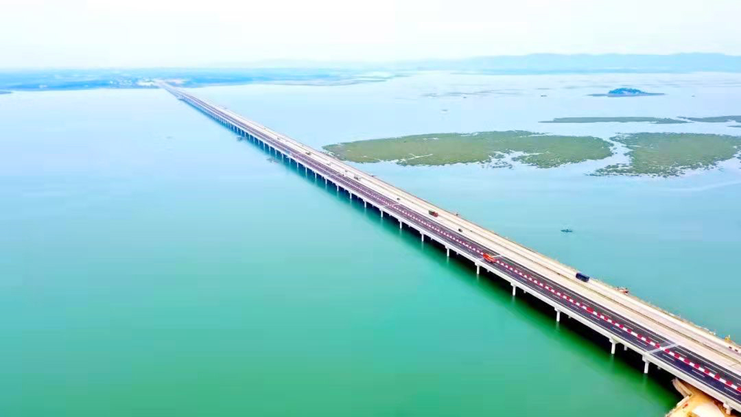 日前,廣西境內(nèi)建成跨度最長(zhǎng)的跨海大橋——鐵山港跨海特大橋右幅新橋順利建成通車。
