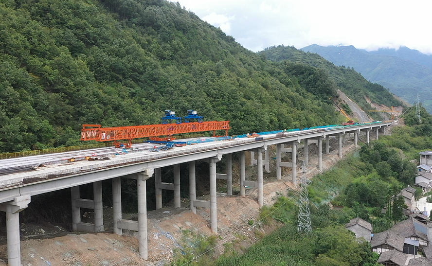 七家咀大橋位于青川縣青溪鎮(zhèn)山體地帶,全長398米,梁板長30米,單片T梁重75噸,,樁基56根,墩柱48根,蓋梁24個(gè),橋臺(tái)4個(gè)。下部樁基因地形條件限制均采用人工挖孔樁施工、預(yù)制梁架設(shè)成為該橋重難點(diǎn)工程。吊裝架設(shè)過程中,采用大型架橋機(jī)架設(shè)。項(xiàng)目安全、技術(shù)、質(zhì)量管理人員全程監(jiān)督控制,切實(shí)保障架設(shè)作業(yè)按照施工方案順利進(jìn)行,保證梁板裝車、運(yùn)輸、架設(shè)的一體化流程。