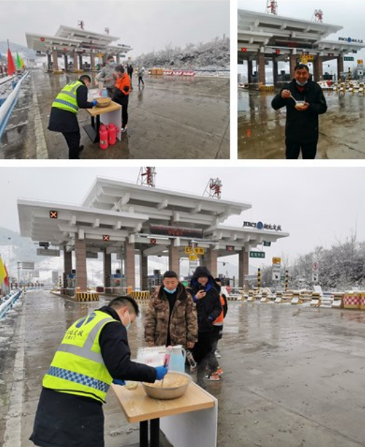 得知交通管制信息后,鄂西北運(yùn)營(yíng)公司青峰收費(fèi)站工作人員立即向司乘做好解釋,并獲悉不少司乘都是從未外省前往河南、四川、重慶、陜西等地復(fù)工,為趕時(shí)間整夜行車沒(méi)有吃飯?吹剿境损嚭黄、疲憊不堪的樣子,該站工作人員迅速行動(dòng)起來(lái),一邊安排人員為旅客倒上熱氣騰騰的熱水,一邊安排收費(fèi)站食堂準(zhǔn)備簡(jiǎn)單的便餐,同時(shí)讓旅客走進(jìn)暖融融的空調(diào)接待室,不受降雪惡劣天氣的絲毫影響。