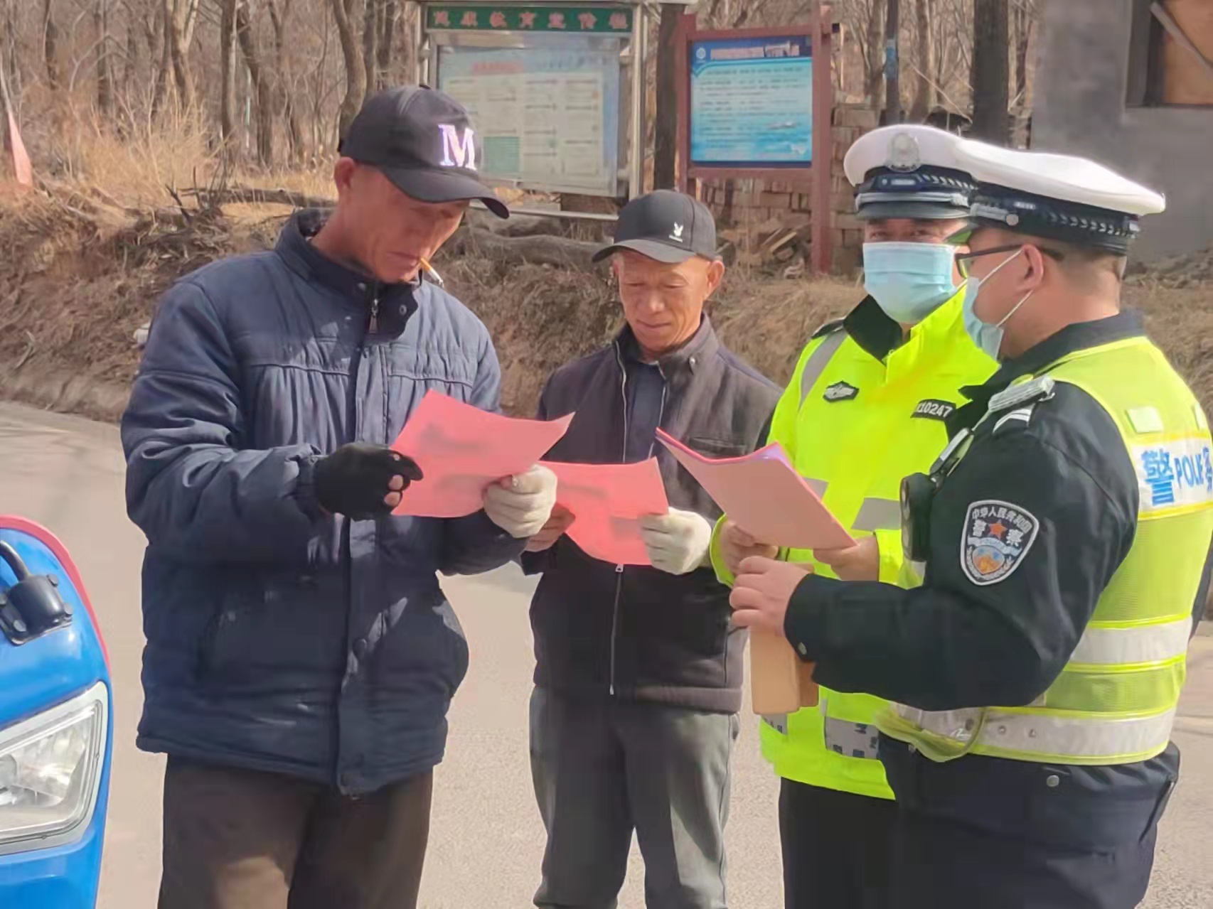 3月18日,石樓交警大隊宣教股人員和鄉(xiāng)鎮(zhèn)中隊部分民輔警一起,在鄉(xiāng)村路上做交通安全知識宣傳。