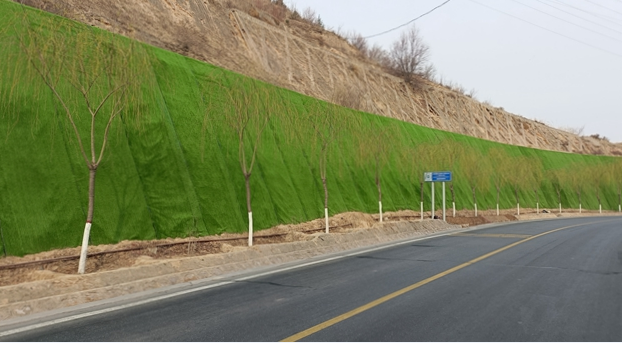 施工中,劉家峽公路段結(jié)合該路段實際路況,采用園藝仿生草皮防護施工技術(shù),在保證邊坡穩(wěn)定安全的基礎(chǔ)上,提升精細化養(yǎng)護,強化邊坡美觀,營造良好的公路路域環(huán)境。目前,已完成園藝仿生草皮900余平方米,計劃于4月中旬全部完成美化工作。