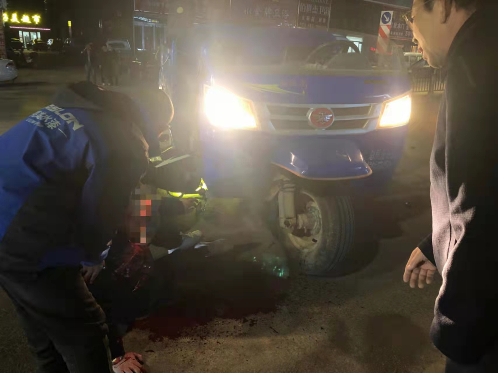 交警迅速到位,開展人員救助和事故勘察工作,F(xiàn)場(chǎng)一片狼藉,摩托車倒在三輪車底,摩托車駕駛員滿臉是血,軟癱在地。交警與隨后趕來的120醫(yī)護(hù)人員合力將傷者送往醫(yī)院搶救。